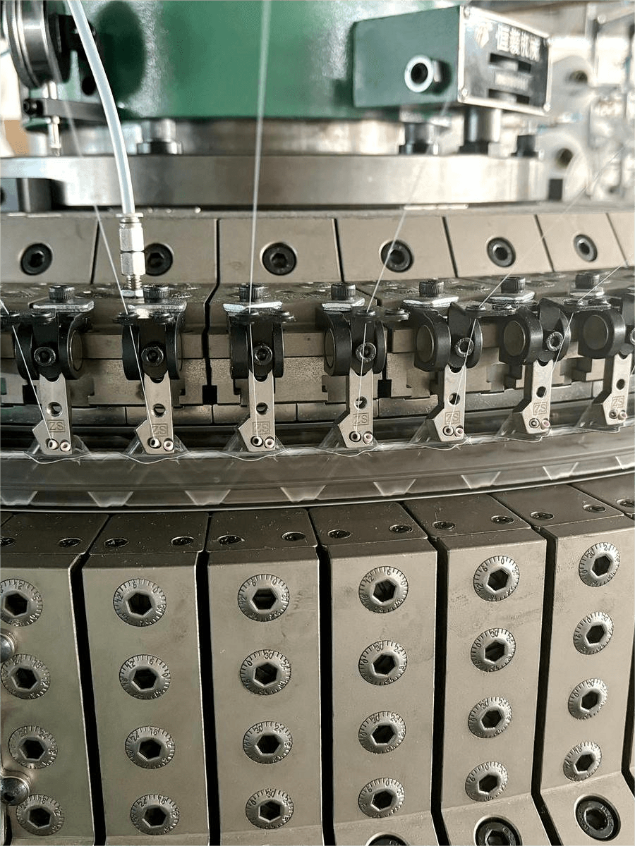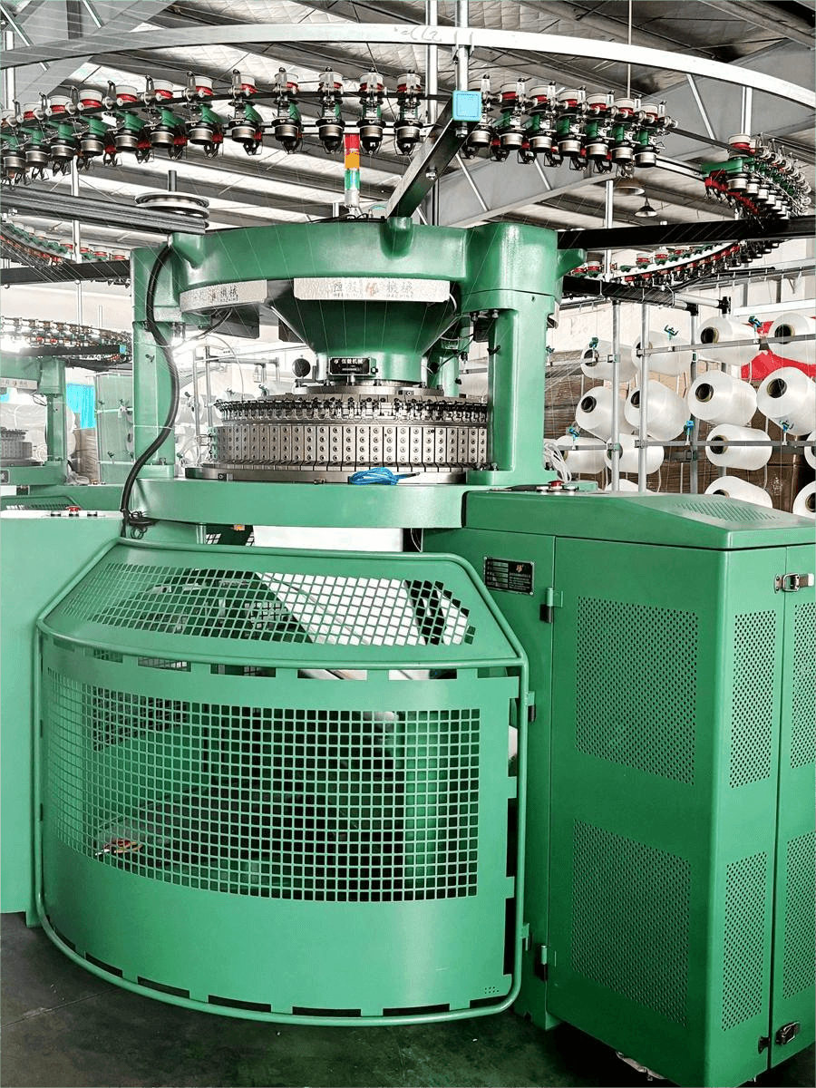 Now we have 40 sets of circular knit machine and work in 3600 squar meters area. The gauge ranges from 8/ 10/ 12/ 15/ 19/ 24/ 28/ 32/ 36/ 40 to 44G. Fabric is mainly for sportswear clothing, some for home textile.